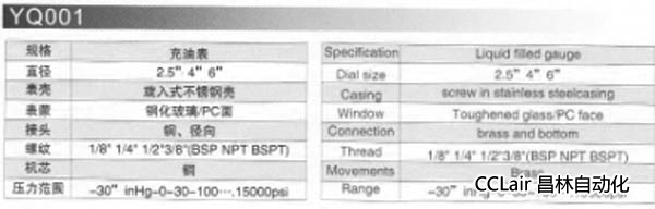型號: YQ001,充油表
