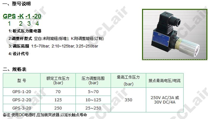 GPS-K-1-20,GPS-K-2-20,GPS-K-3-20,GPS-1-20,GPS-2-20,GPS-3-20,板式壓力繼電器