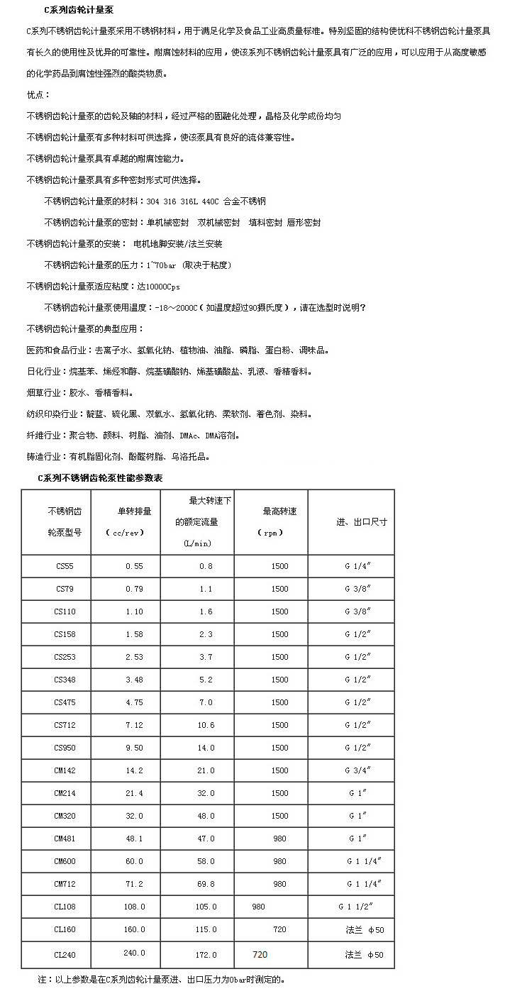 CS55,CS79,CS110,CS158,CS253,CS348,CS475,CS712,CS950,CM142,CM214,CM320,CL108,CL160,CL240,齒輪計(jì)量泵