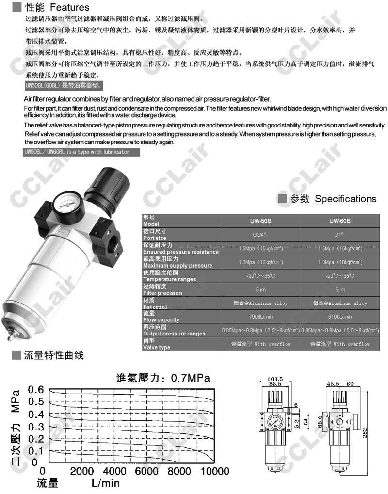 UNIWO,UW-20B,UW-30B,UW-40B,UW-50B,UW-60B,空氣過濾減壓閥