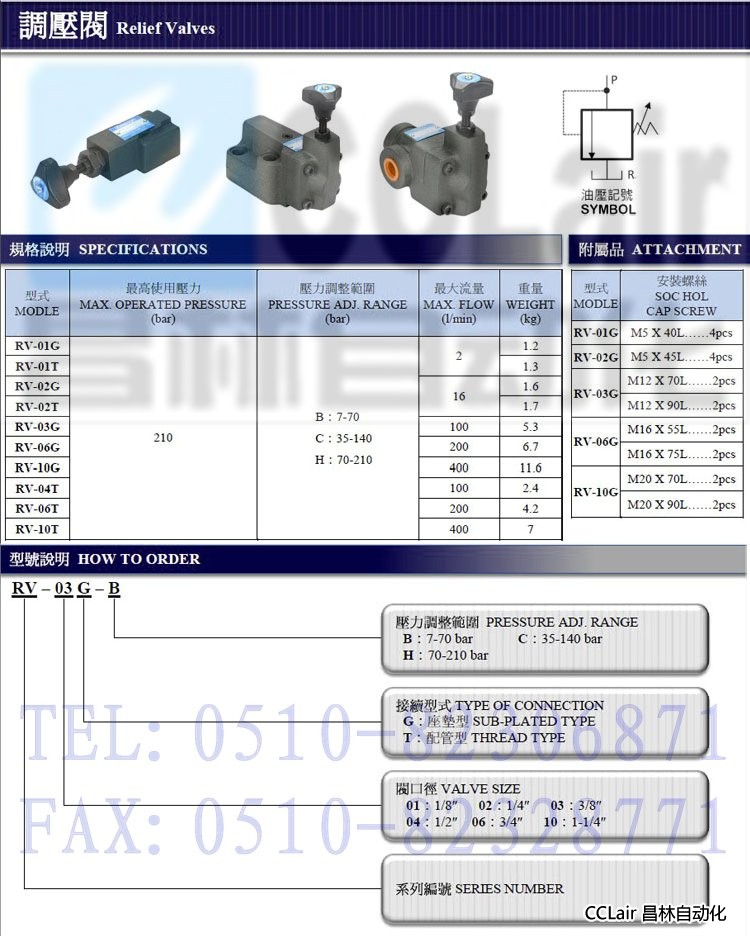 RV-01G-B,RV-01G-C,RV-01G-H,RV-01T-B,RV-01T-C,RV-01T-H,調壓閥