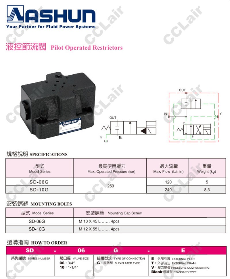 詳細(xì)信息 SD-06G-E,SD-06G-T,SD-06G-V,SD-10G-E,SD-10G-T,SD-10G-V,ASHUN油順液控節(jié)流閥