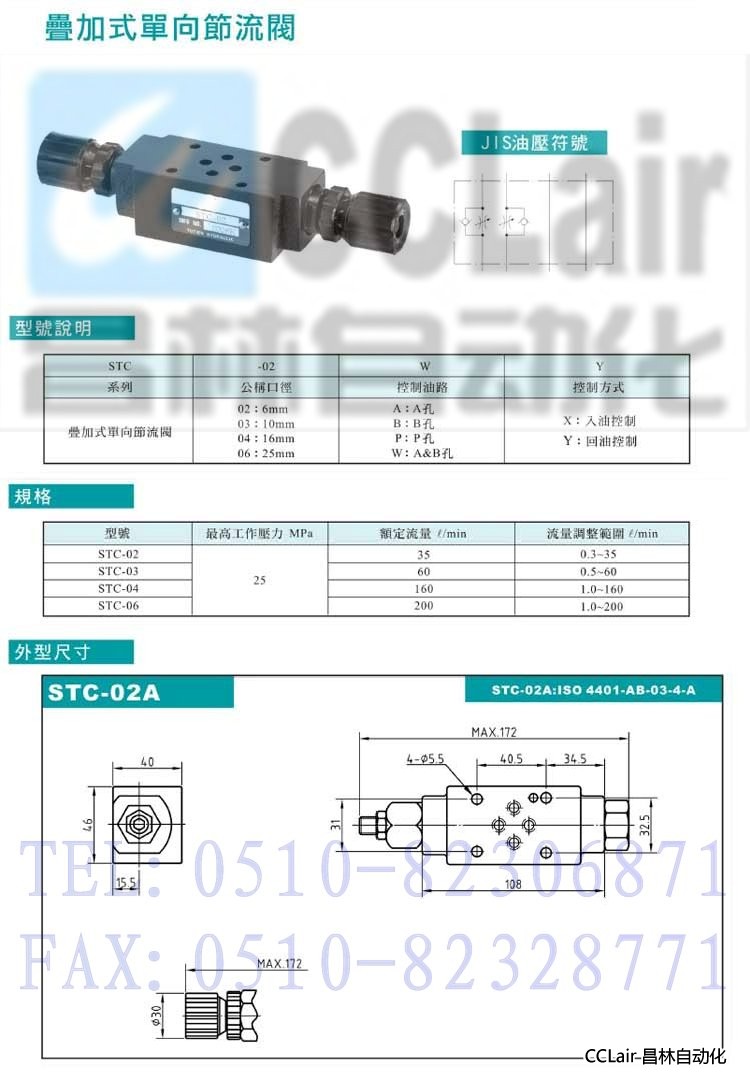 STC-02A,STC-03B,STC-06W,STC-02B,STC-03A,STC-06A,STC-02W,STC-03W,STC-06B,疊加式單向節(jié)流閥