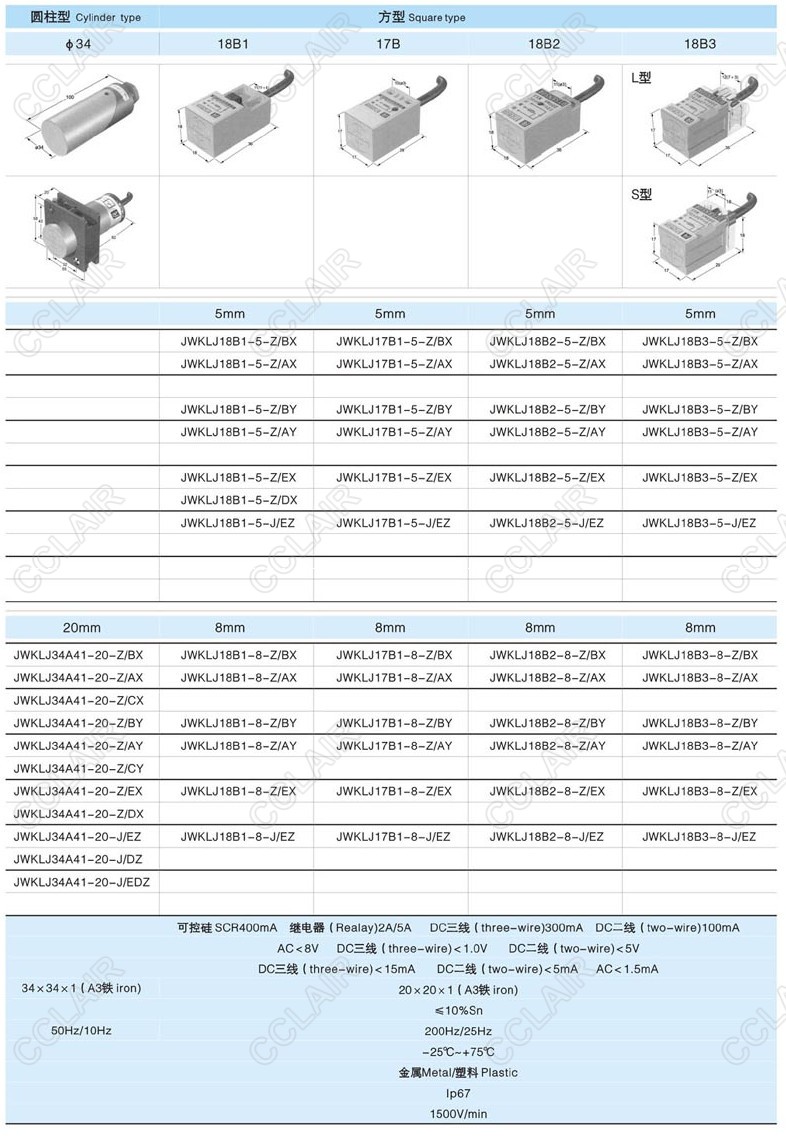 型號: JWKLJ18B1-5-Z/BX,JWKLJ18B3-5-Z/BX,JWKLJ18B3-8-Z/EX,JWKLJ18B3-8-J/EZ,接近開關(guān)