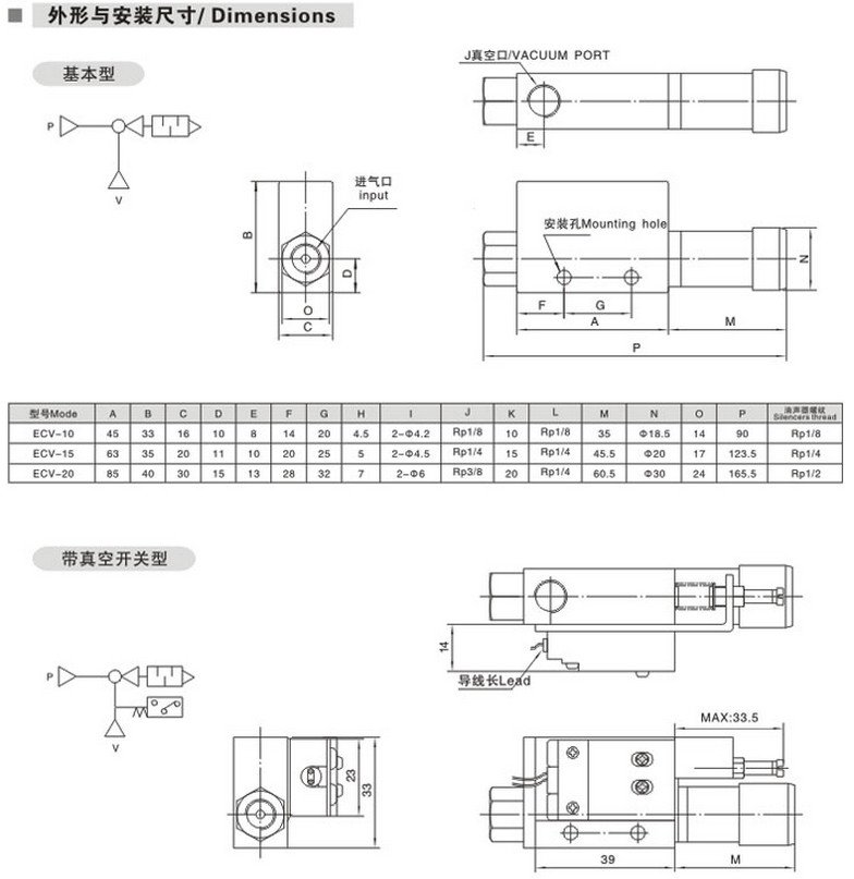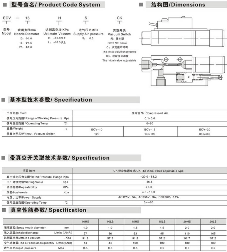 ECV-10HS,ECV-10LS,ECV-15HS,ECV-15LS,ECV-20HS,ECV-20LS,真空發(fā)生器