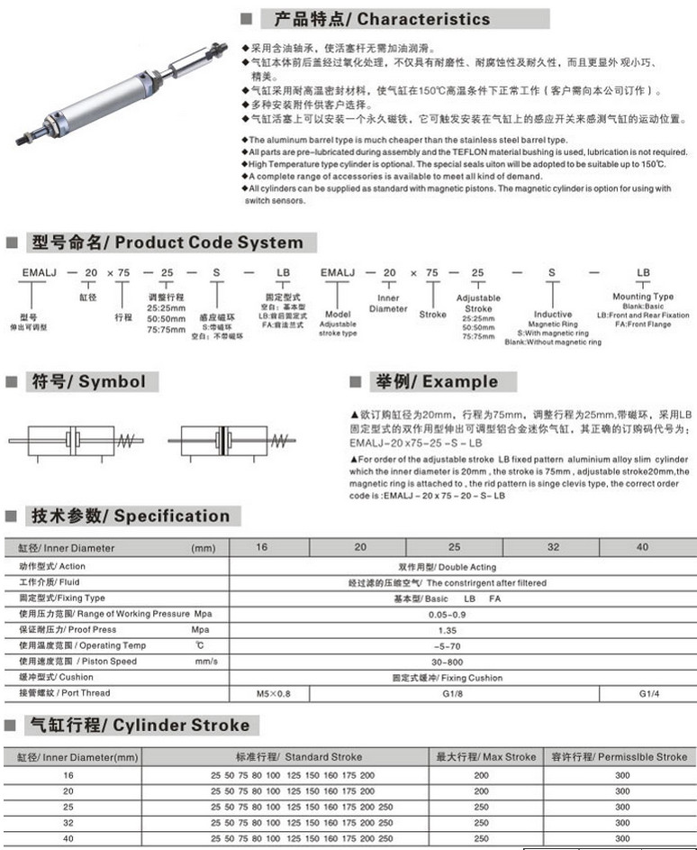 EMALJ-CM20*25,EMALJ-CM20*75,EMALJ-CM20*80,EMALJ-CM20*100,EMALJ-CM20*125,EMALJ-CM20*150,EMALJ-CM20*160,EMALJ-CM20*175,EMALJ-CM20*200,