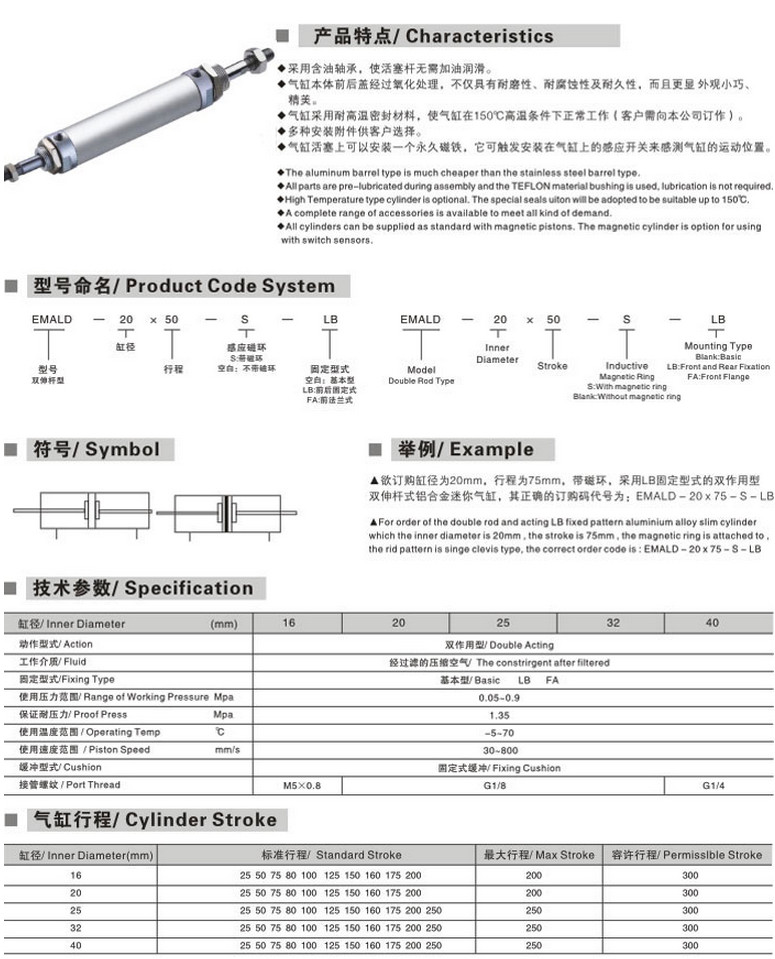EMALD-CM40*25,EMALD-CM40*50,EMALD-CM40*75,EMALD-CM40*80,EMALD-CM40*125,EMALD-CM40*150,EMALD-CM40*160,EMALD-CM40*175,EMALD-CM40*200,EMALD-CM40*250,