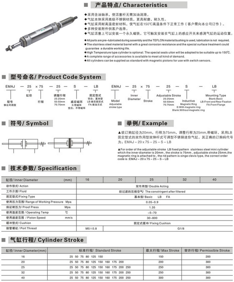 產(chǎn)品: 瀏覽次數(shù):1047EMAJ-16*25-25,EMAJ-25*50-25,EMAJ-32*75-25,EMAJ-40*80-25,不銹鋼迷你氣缸