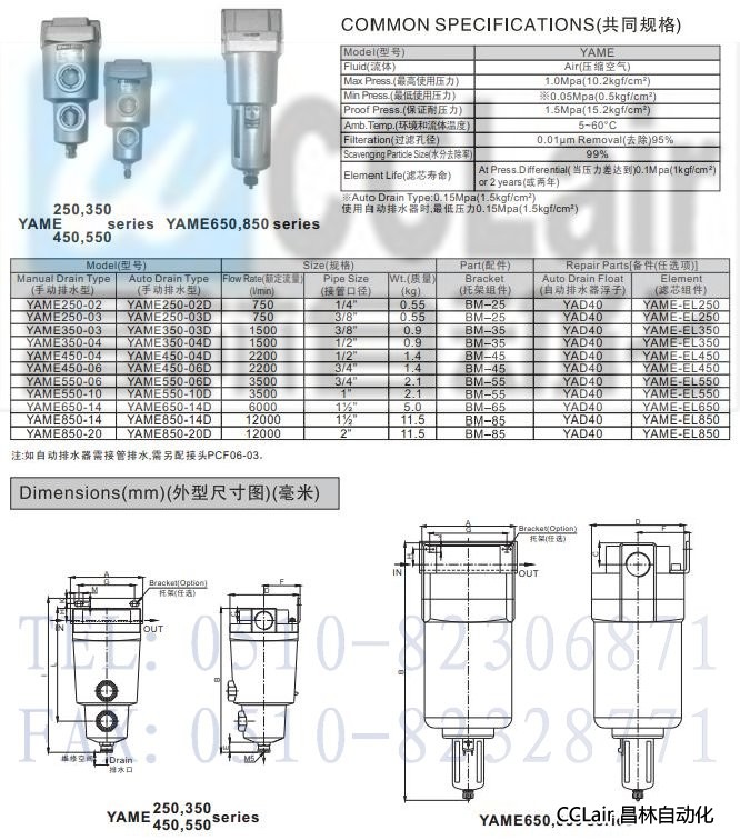 YAME250-02,YAME250-03,YAME350-03,YAME350-04,越小油霧分離器