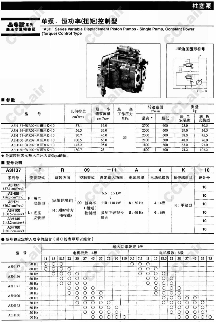 A3H37,A3H56,A3H71,A3H100,A3H145,A3H180,A3H37-FR09-11A4K-10,高壓變量柱塞泵