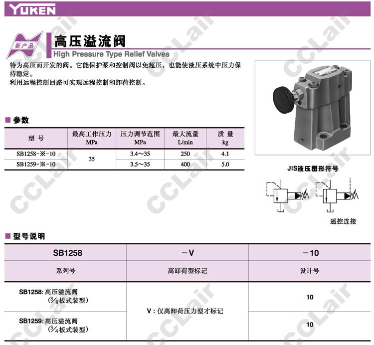 詳細(xì)信息 SB1258-V-10,SB1259-V-10,高壓溢流閥,YUCIYUKEN榆次油研