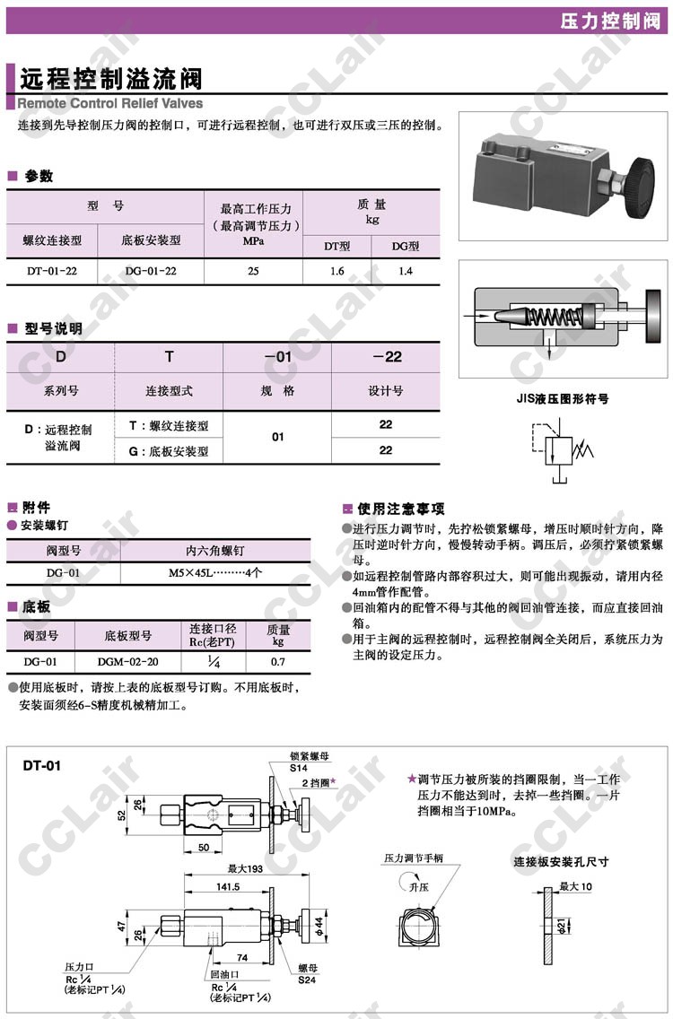 DT-01-22,DG-01-22,遠程控制溢流閥,YUCIYUKEN油研