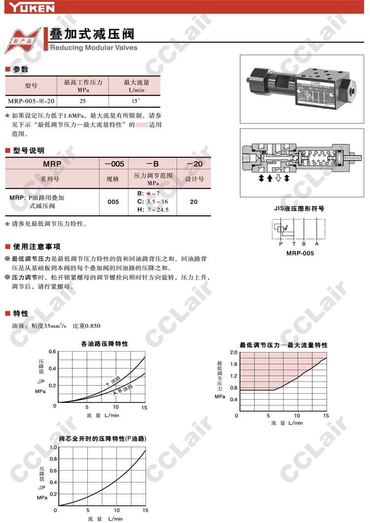 型號(hào): MRP-005-B-20,MRP-005-C-20,MRP-005-H-20,疊加式減壓閥,YUCIYUKEN榆次油研
