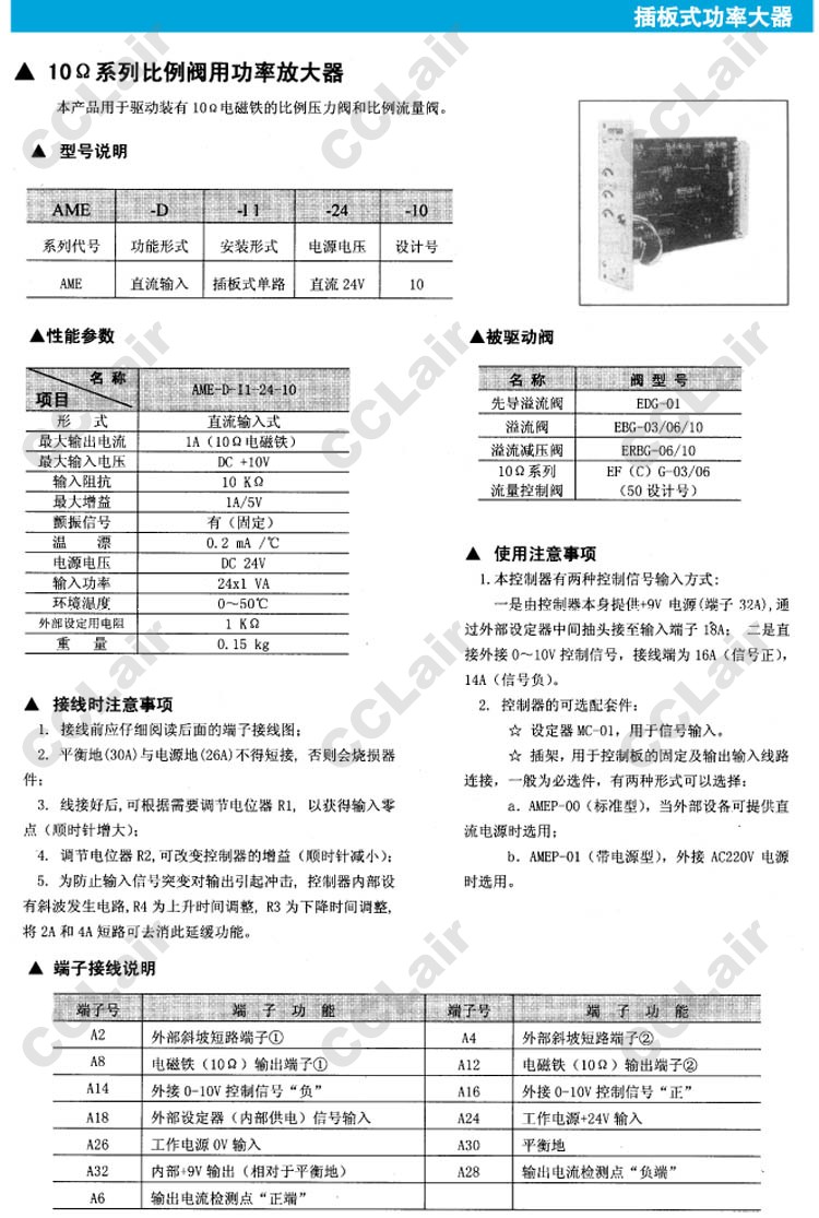AME-D-11-24-10,比例閥用功率放大器,YUCIYUKEN榆次油研