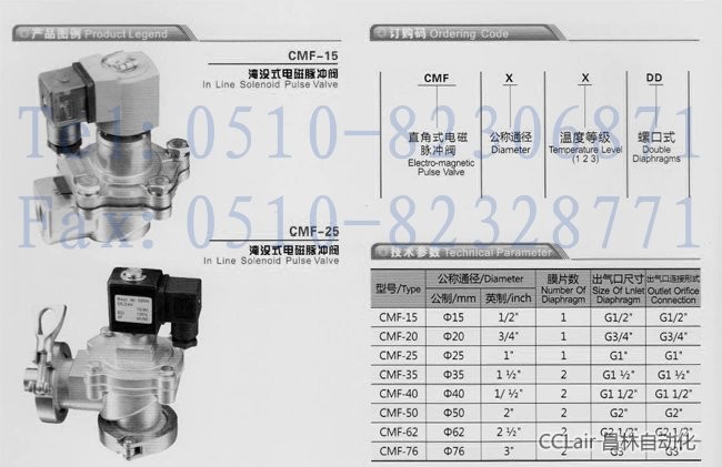 CMF-15,CMF-20,CMF-25,CMF-35,CMF-40,CMF-50,CMF-62,CMF-76,淹沒(méi)式電磁脈沖閥