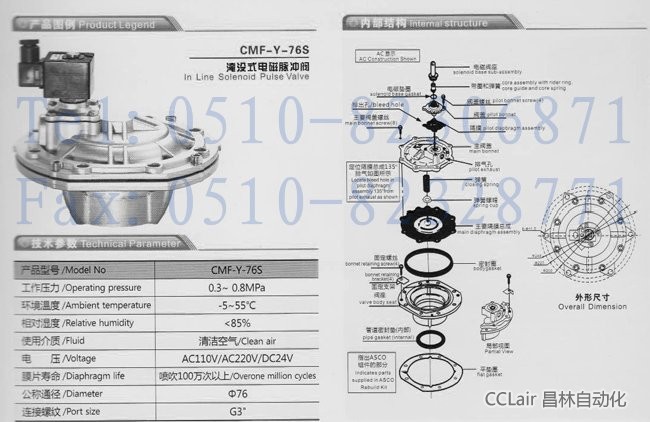 CMF-Y-76,CMF-Y-25,CMF-Y-40S,CMF-Y-50S,CMF-Y-62S,CMF-Y-76S,淹沒式電磁脈沖閥