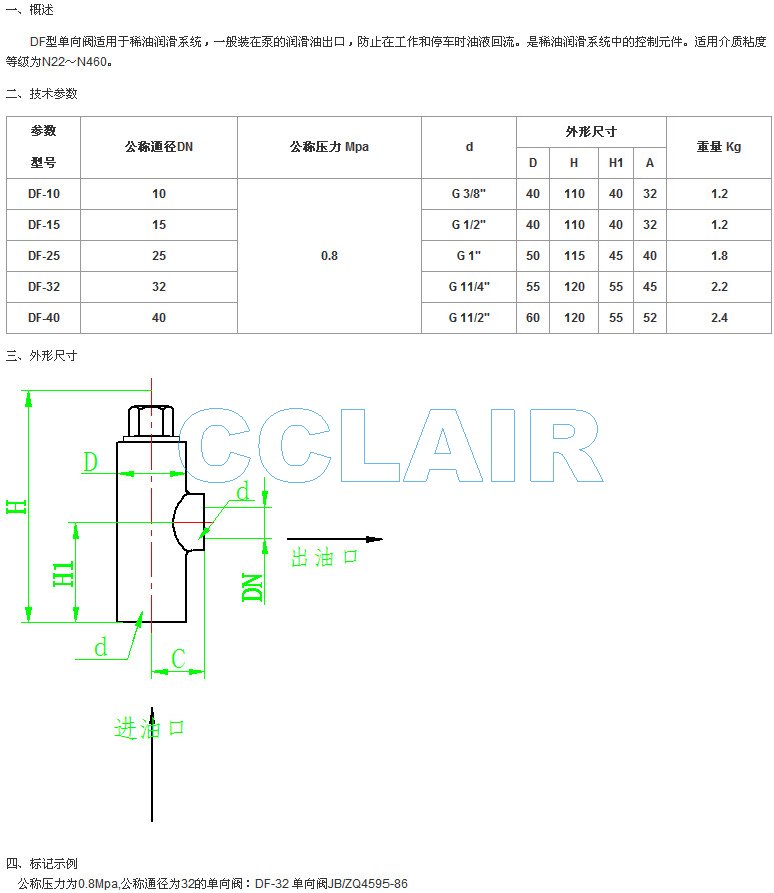 DF-10,DF-15,DF-25,DF-DF-32,DF-40,單向閥