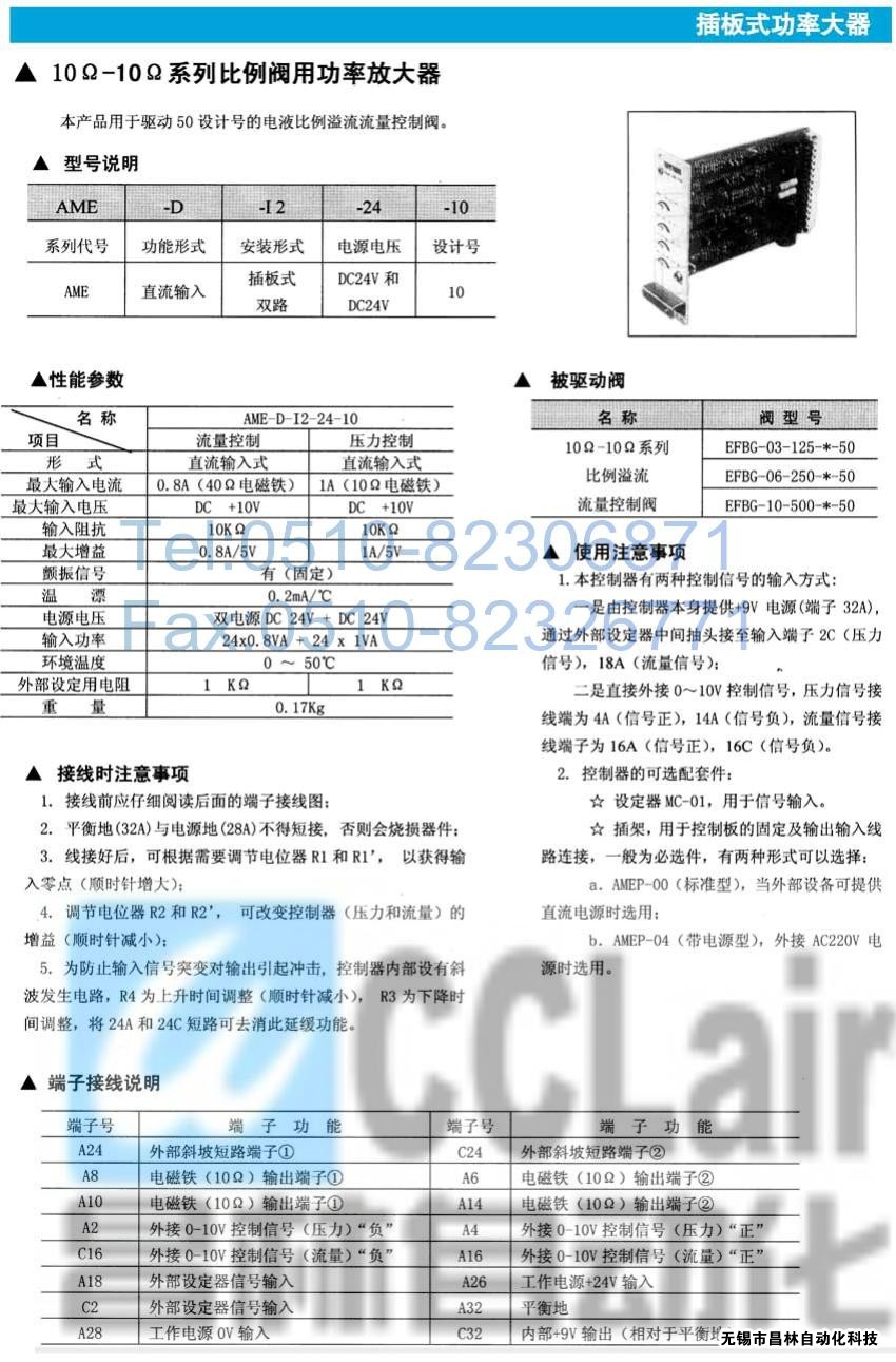 AME-D-I2-24-10,功率放大器,榆次油研功率放大器,YUKEN功率放大器