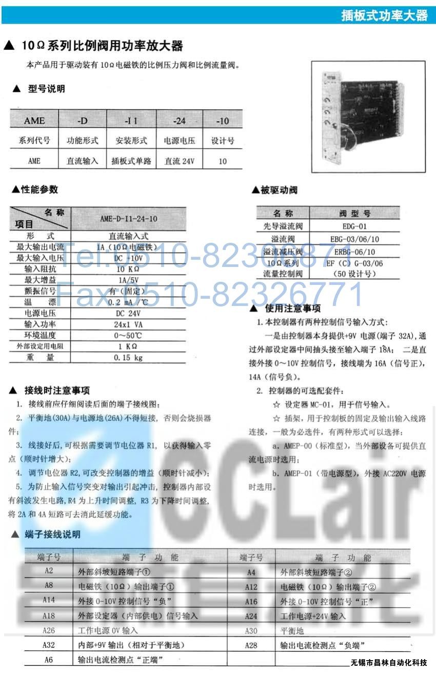 AME-D-11-24-10,功率放大器,榆次油研功率放大器,YUKEN功率放大器