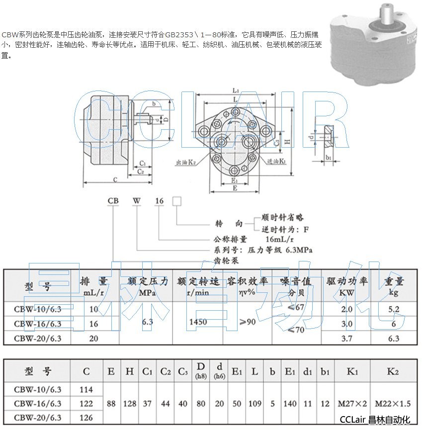 CBW-10/6.3,CBW-16/6.3,CBW-20/6.3,中壓低噪音齒輪油泵