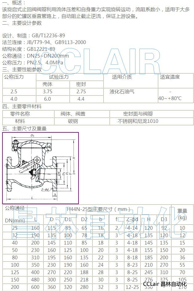 H44N-16-DN25,H44N-16-DN32,H44N-25-DN25,H44N-40-DN25,液化氣止回閥