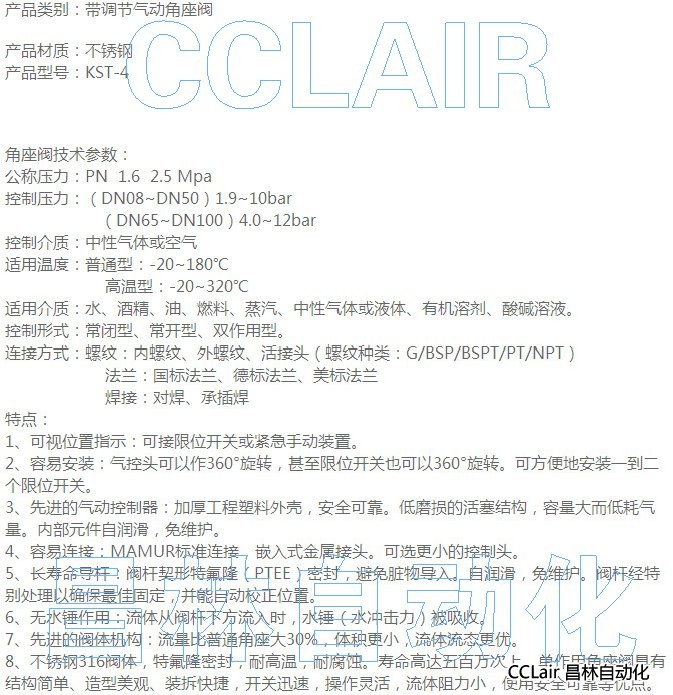 詳細信息 KST-4,2000Y型帶調(diào)節(jié)氣動角座閥