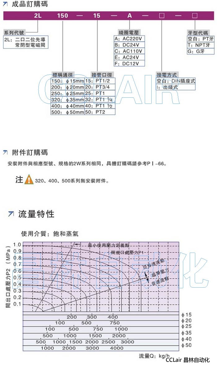 2L150-15-A,2L200-20-A,2L250-25-A,2L320-32-A,2L400-40-A,2L500-50-A,電磁閥