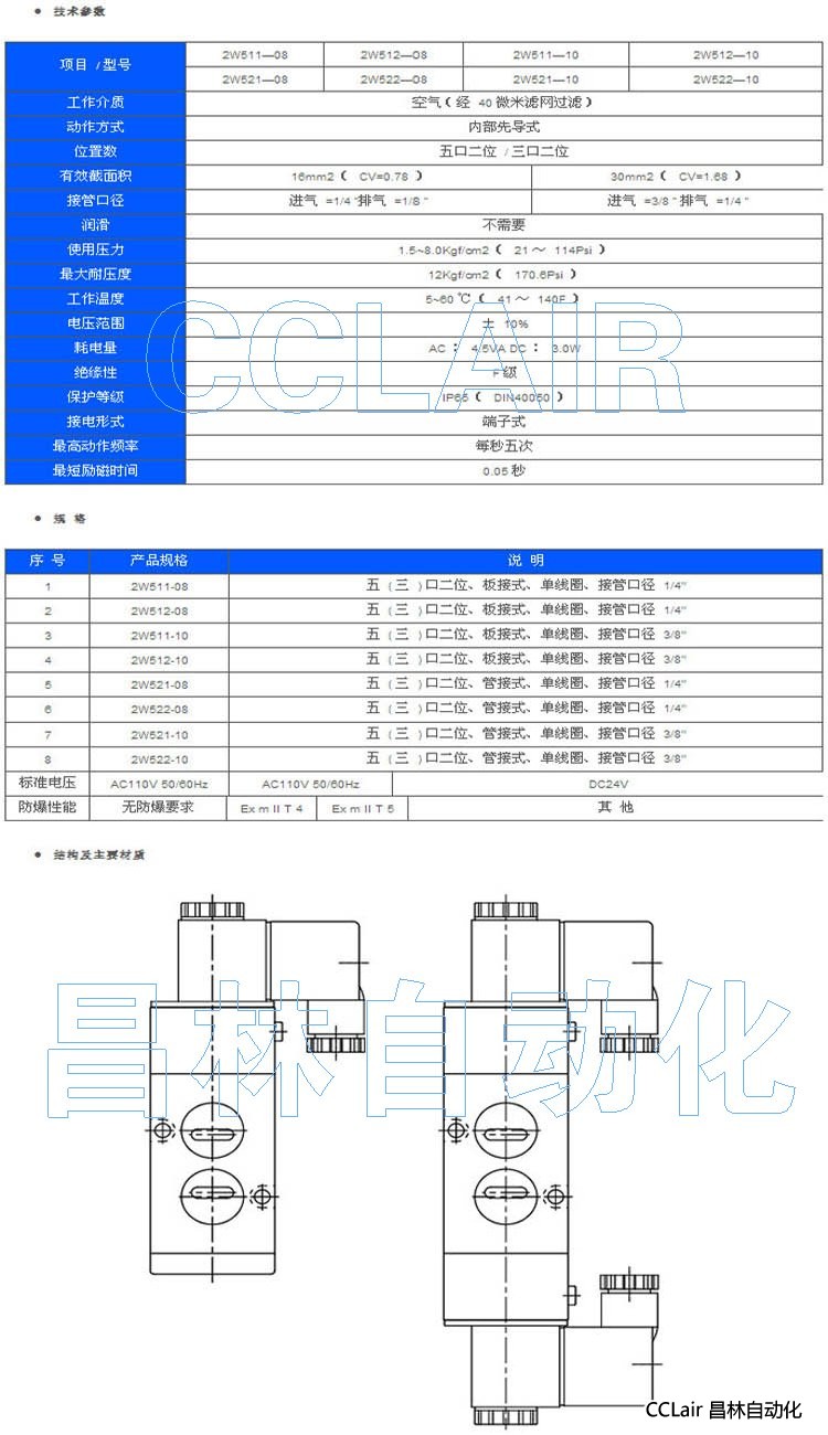 型號: 2W511-08,2W511-10,2W512-08,2W512-10,2W521-08,2W522-08,2W522-10,電磁閥