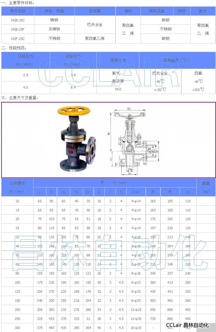 J42B-25C,J42B-25P,J42F-25C,J42B-40C,J42B-40P,J42F-40C,角式氨用截止閥