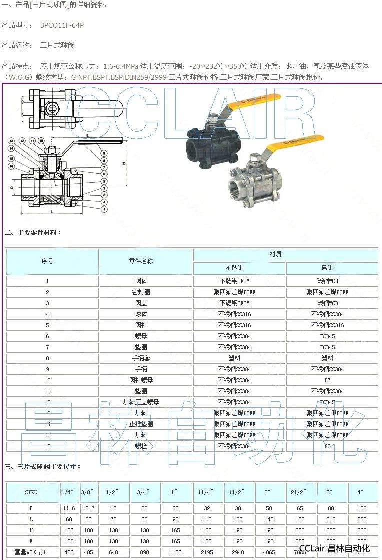 產(chǎn)品: 瀏覽次數(shù):6473PCQ11F-64P,三片式球閥