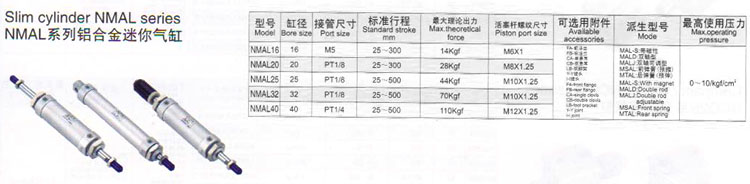 詳細(xì)信息 NMAL16,NMAL20,NMAL25,NMAL32,NMAL40,鋁合金迷你氣缸