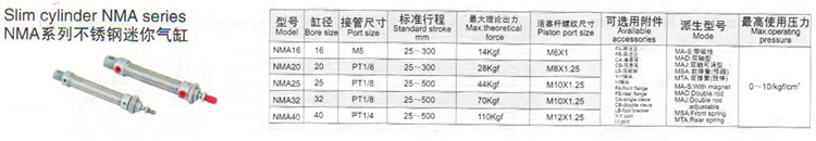 NMA16,NMA20,NMA25,NMA32,NMA40,不銹鋼迷你氣缸