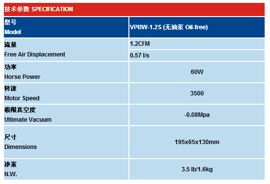 詳細(xì)信息 VPBW-1.2S,無油真空泵