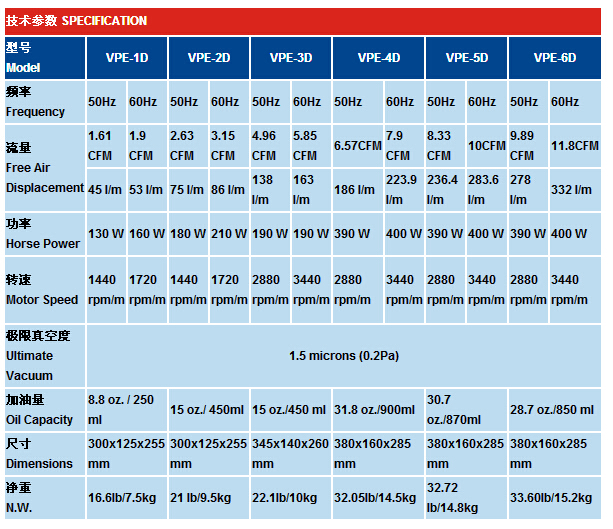 首頁 > 產(chǎn)品&解決方案 > VPE-1D,VPE-2D,VPE-3D,VPE-4D,VPE-5D,VPE-6D,雙級真空泵