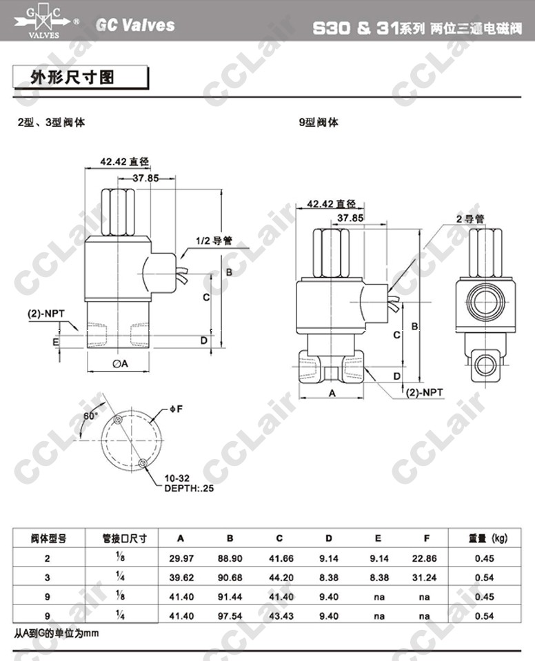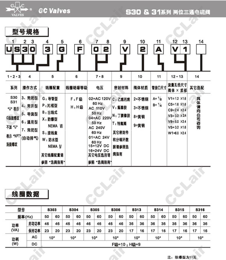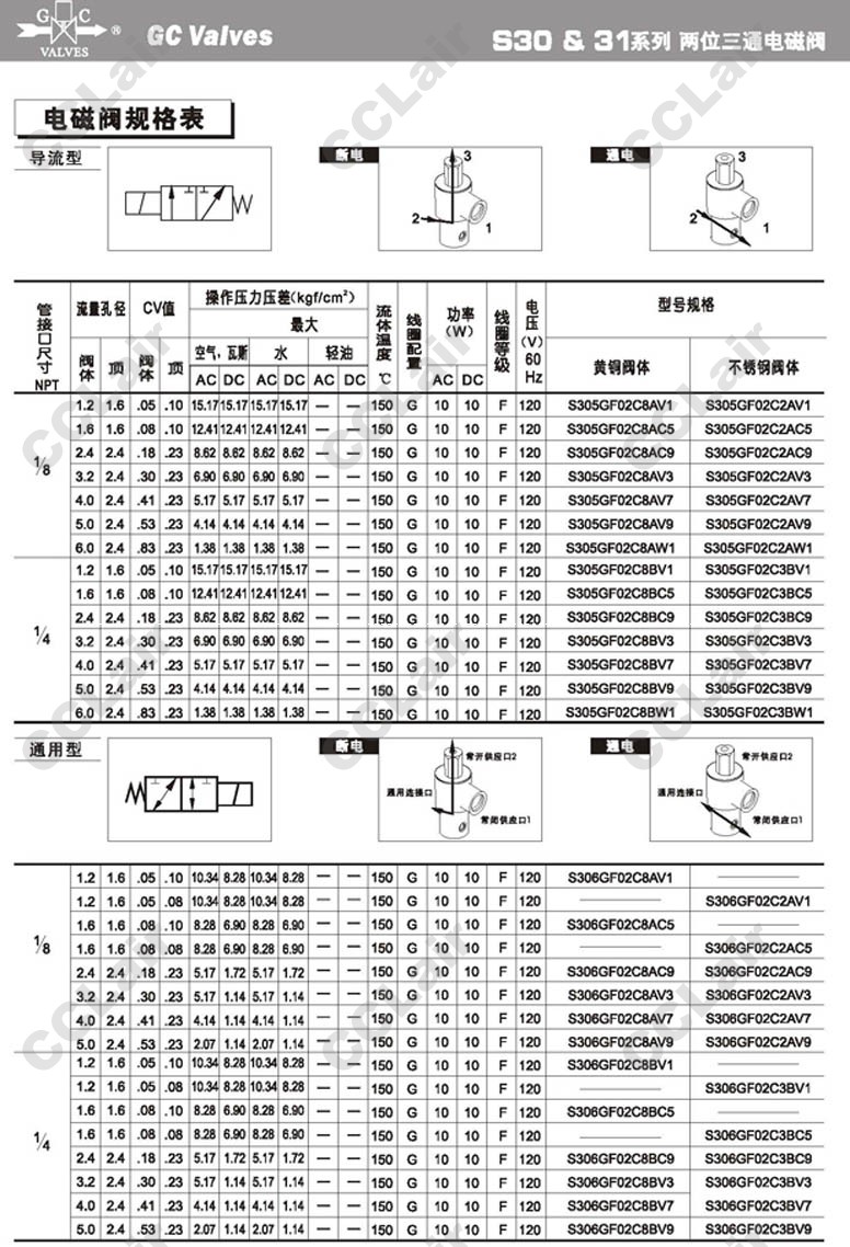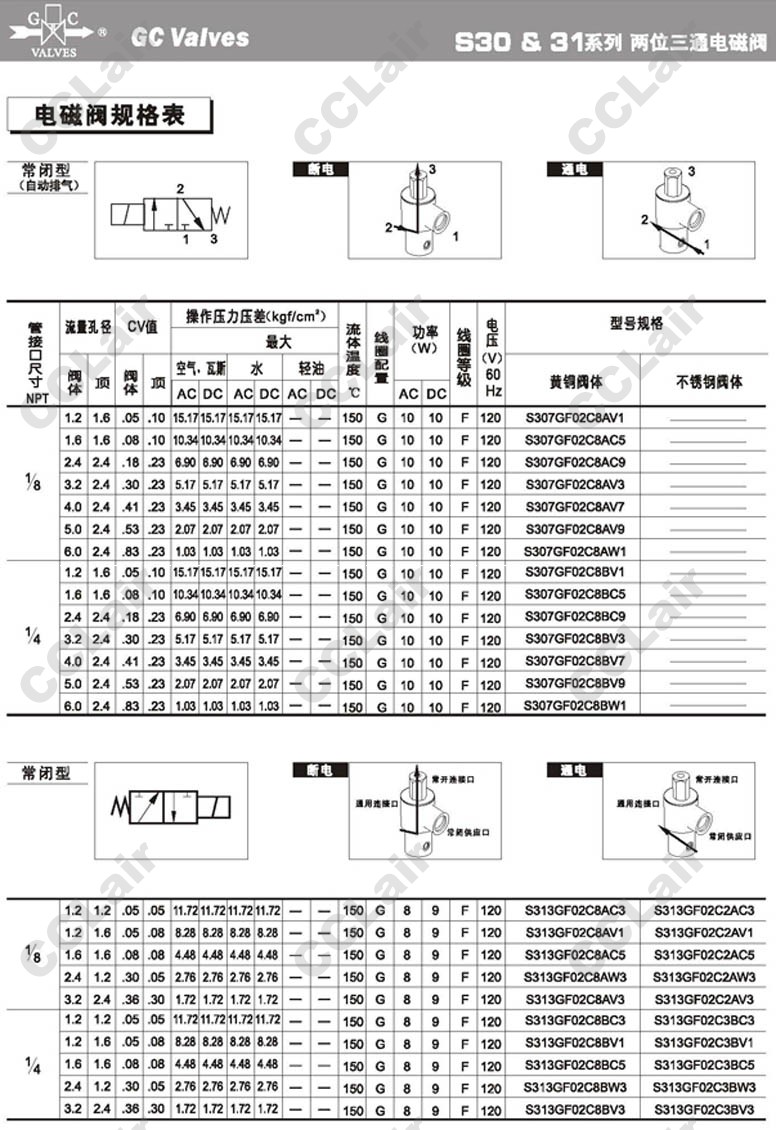 S303GF02,S304GF02,S305GF02,S306GF02,S307GF02,S313GF02,S314GF02,S315GF02,S316GF02,S317GF02,GC Valves二位三通直動式電磁閥
