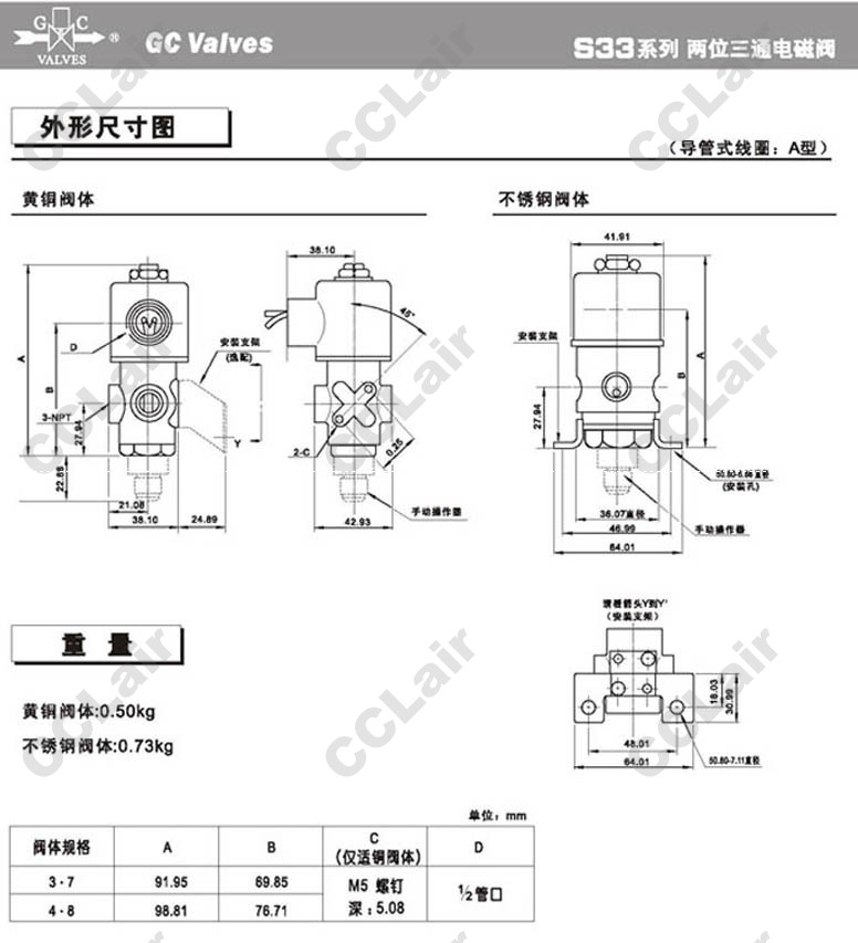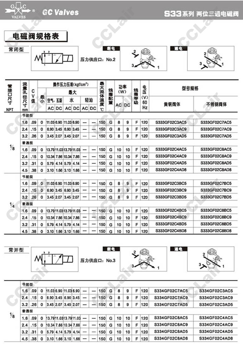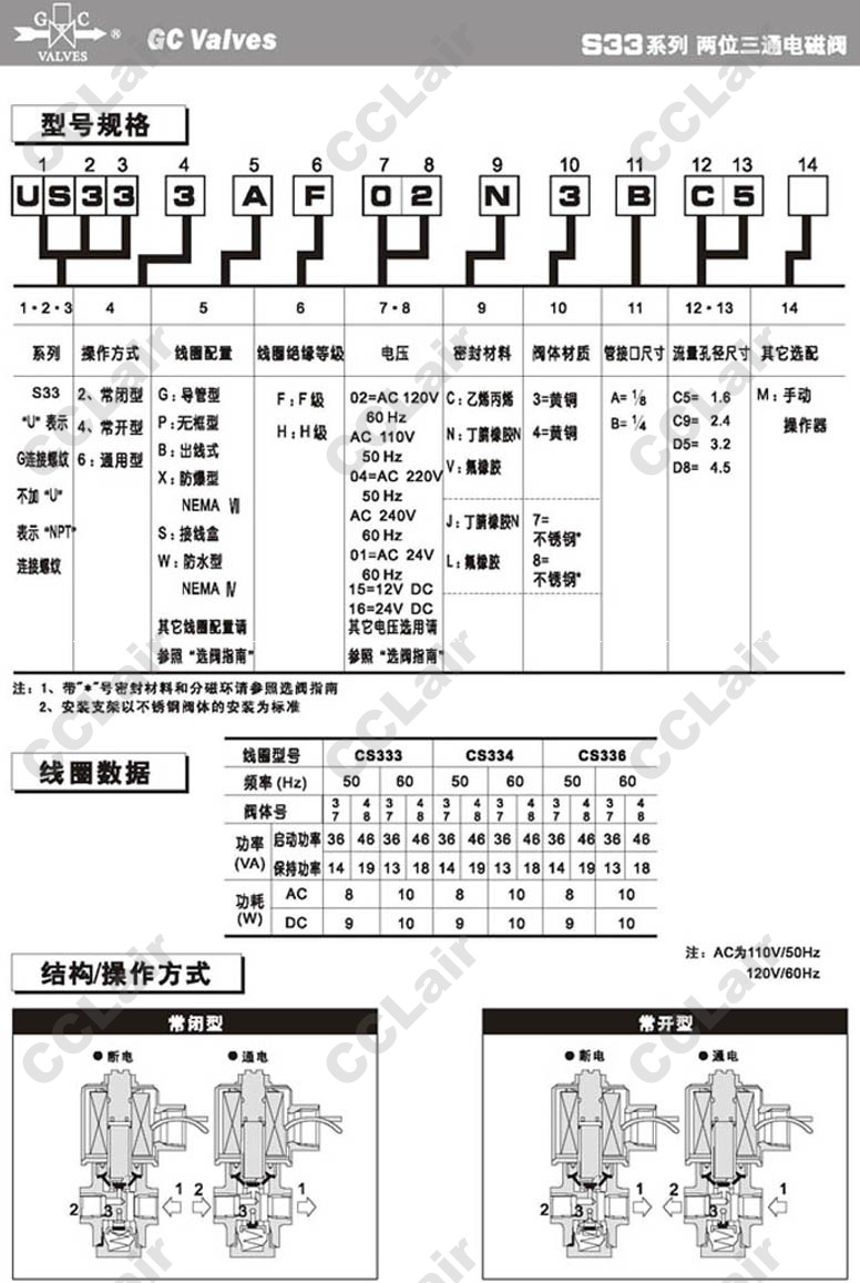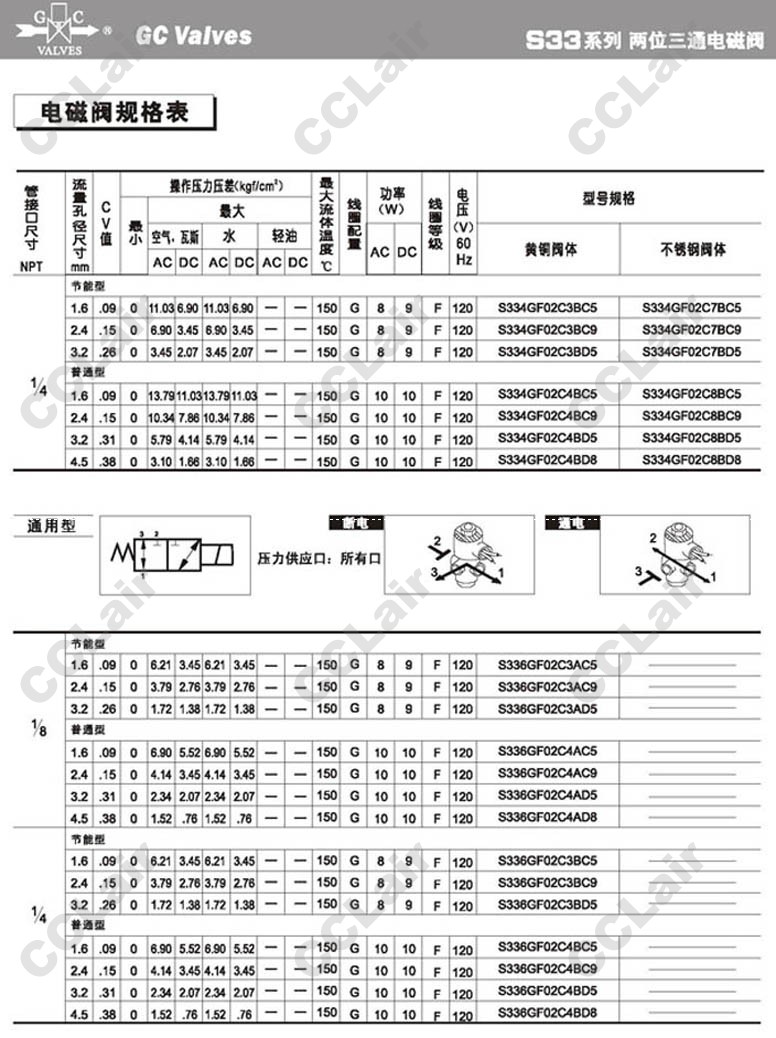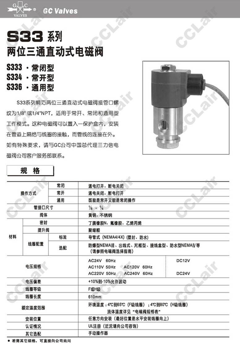 S333GF02C,S334GF02C,S336GF02C,S336GF02C3BD5,S336GF02C4BD8,S336GF02C4BC9,GC Valves二位三通直動(dòng)式電磁閥