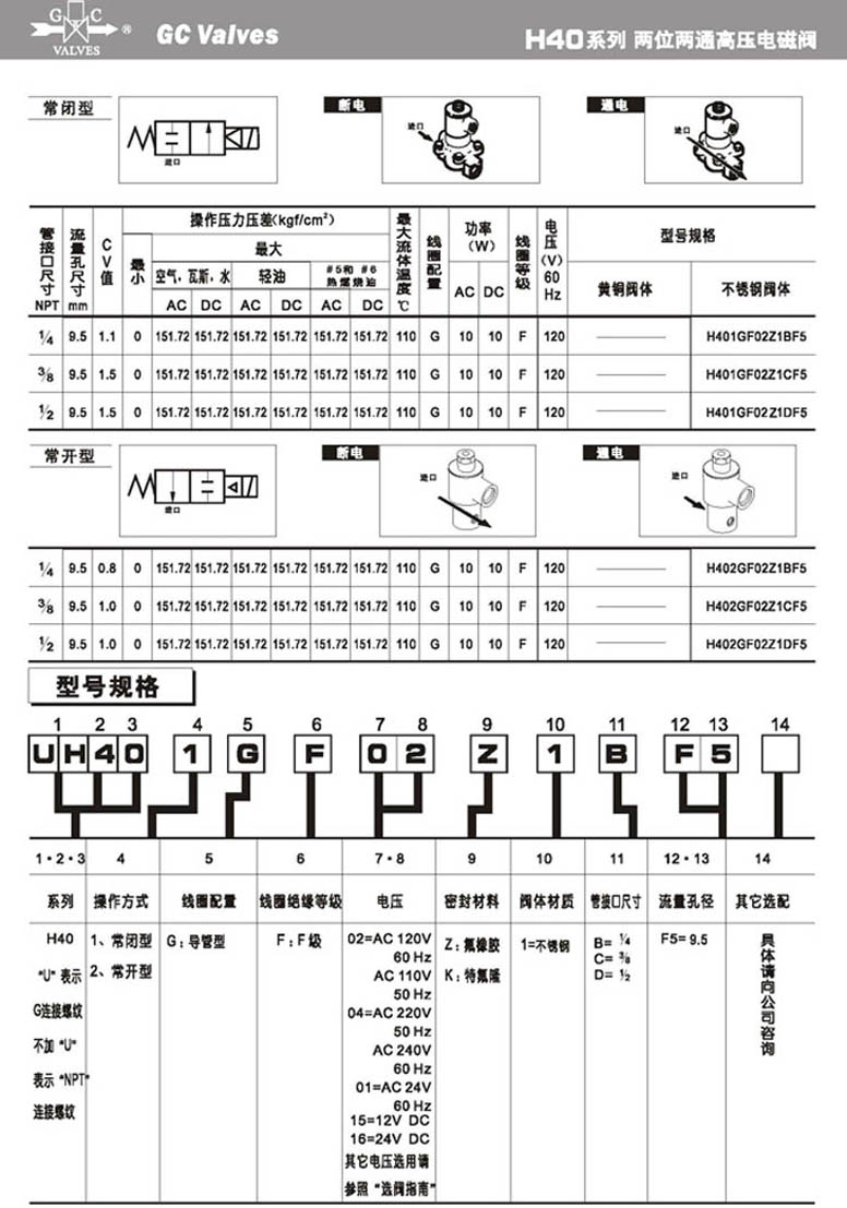 H401GF02Z1BF5,H401GF02Z1CF5,H401GF02Z1DF5,H402GF02Z1BF5,H402GF02Z1CF5,H402GF02Z1DF5,GC Valves二拉二通高壓電