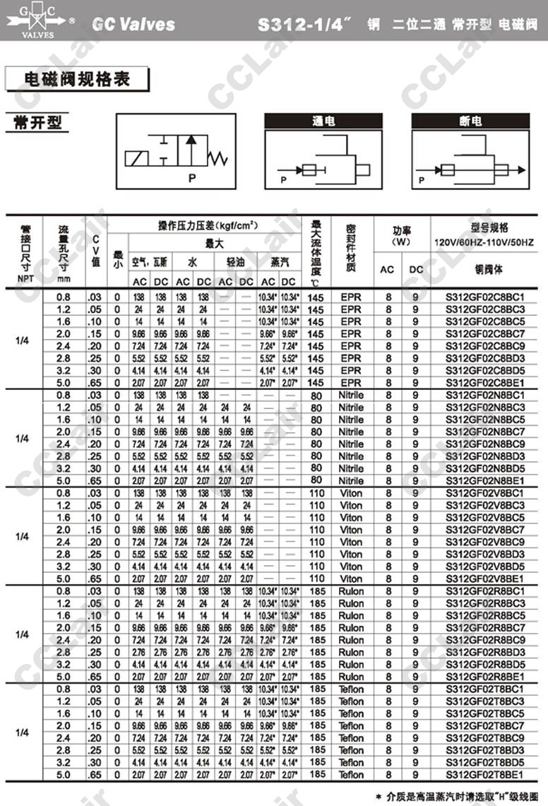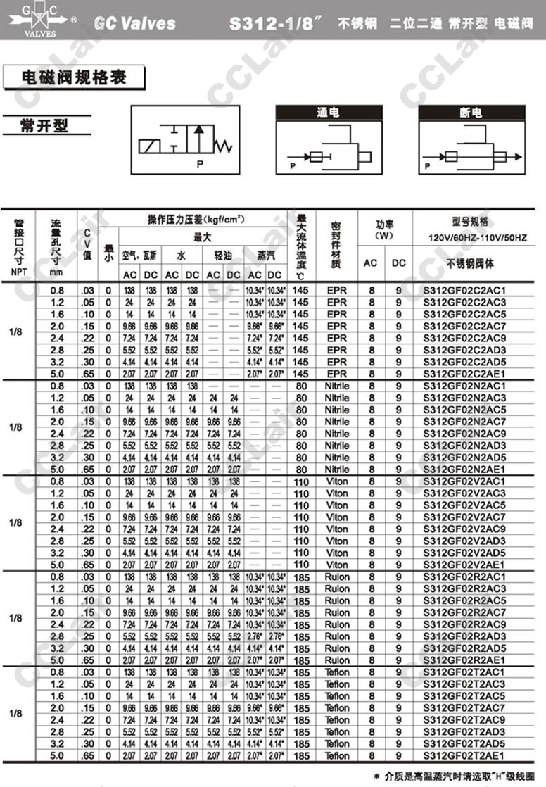 S312GF02V8AC9,S312GF02V8AD3,S312GF02V8AD5,S312GF02V8AD7,GC Valves S312GF02V8AE1,S312GF02R8AC1,