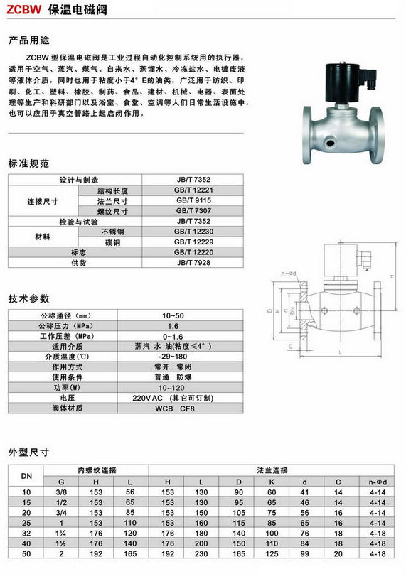 ZCBW-DN10,ZCBW-DN15,ZCBW-DN20,ZCBW-DN25,ZCBW-DN32,ZCBW-DN40,ZCBW-DN50,保溫電磁閥