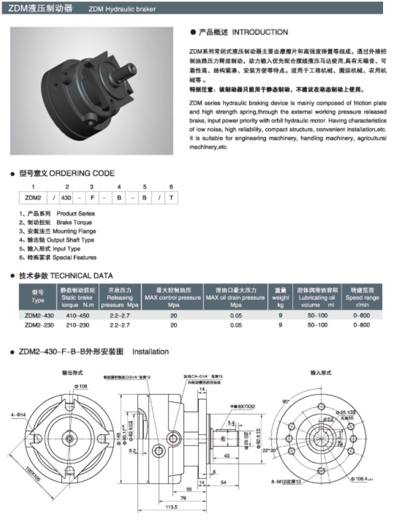 ZDM2-430,ZDM2-230,液壓制動(dòng)器