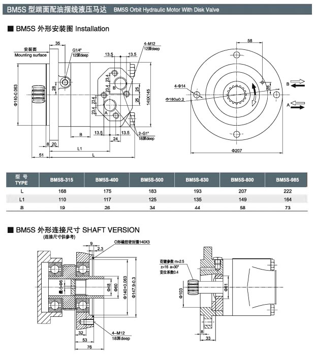BM5S-315,BM5W-315,BM5S-400,BM5W-400,BM5S-500,BM5W-500,BM5S-630,BM5W-630,BM5S-800,擺線液壓馬達