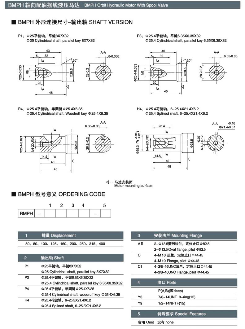 BMPH-50,BMPH-80,BMPH-100,BMPH-125,BMPH-160,BMPH-200,BMPH-250,BMPH-315,BMPH-400,軸向配油擺線馬達(dá) |