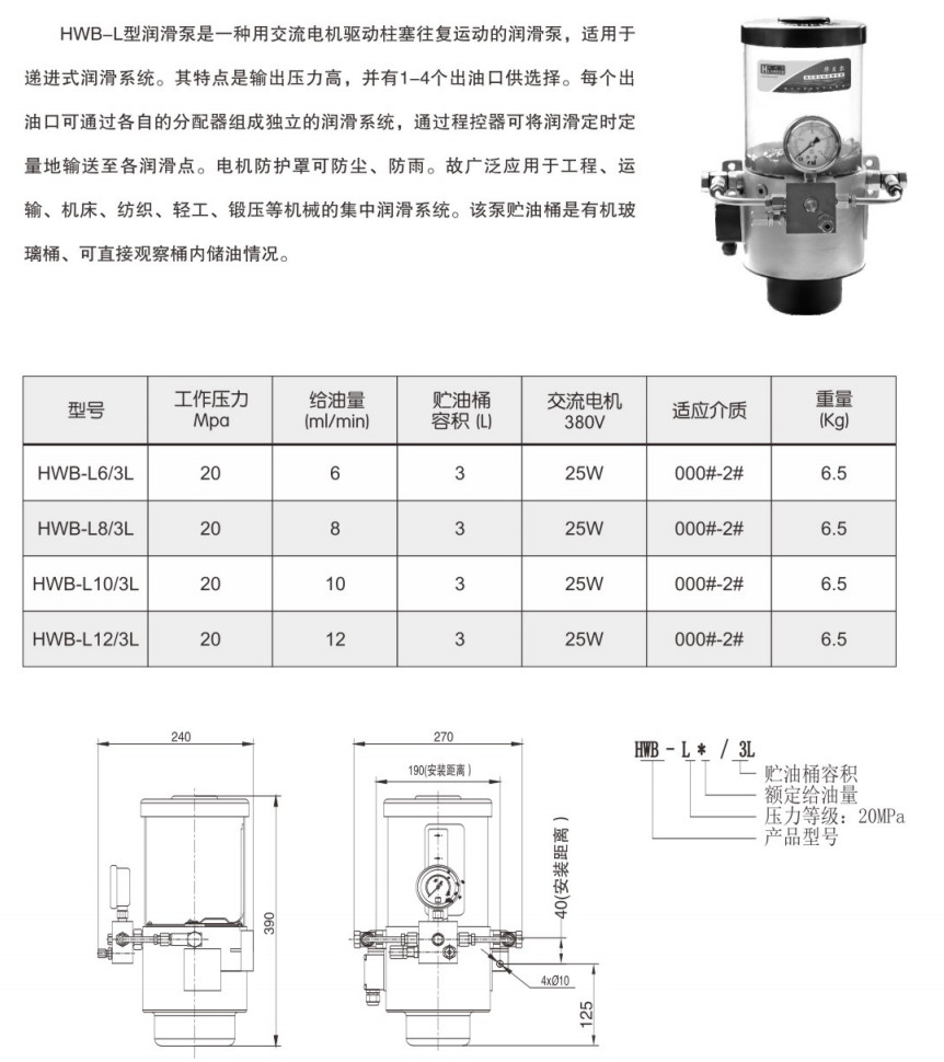 型號(hào): HWB-L6/3L,HWB-L8/3L,HWB-L10/3L,HWB-L12/3L,電動(dòng)潤(rùn)滑泵