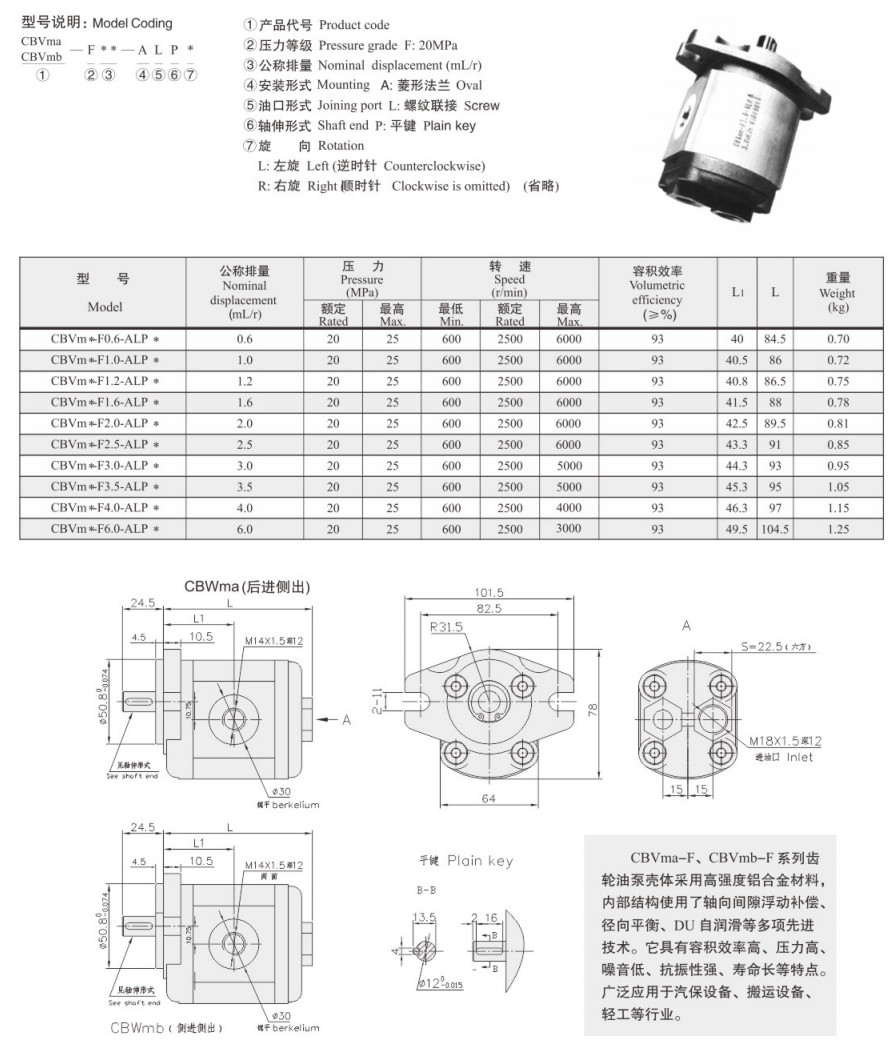 CBVma-F0.6,CBVma-F1.0,CBVma-F1.2,CBVmb-F1.6,CBVmb-F2.0,CBVmb-F2.5,CBVmb-F3.0,齒輪油泵