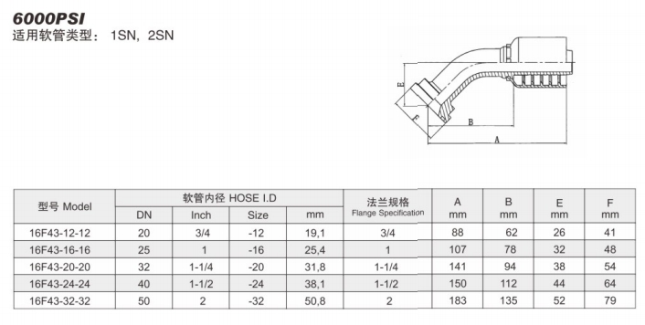 16F43-12-12,16F43-16-16,16F43-20-20,16F43-24-24,16F43-32-32,45度法蘭接頭