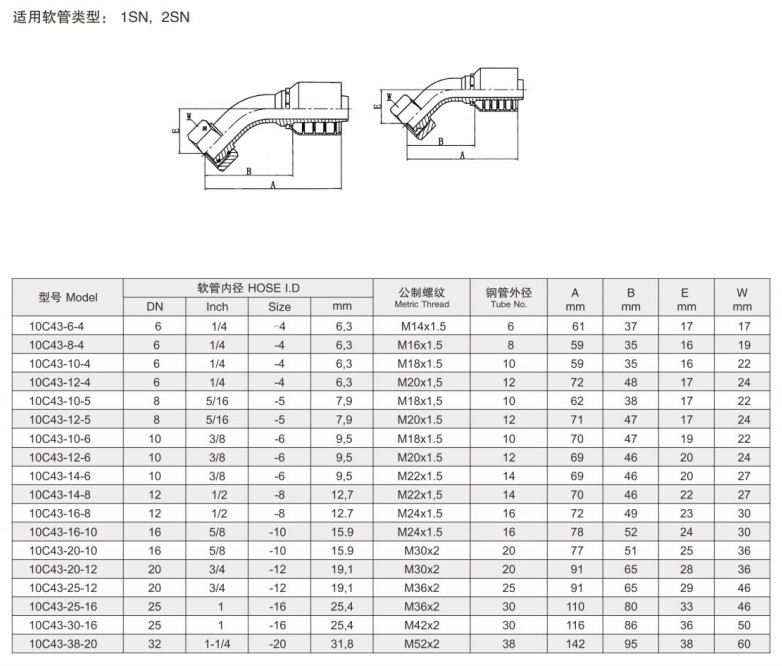 首頁 > 產(chǎn)品&解決方案 > 10C43-6-4,10C43-8-4,10C43-10-4,10C43-12-4,10C43-10-5,10C43-10-6,扣壓式軟管接頭