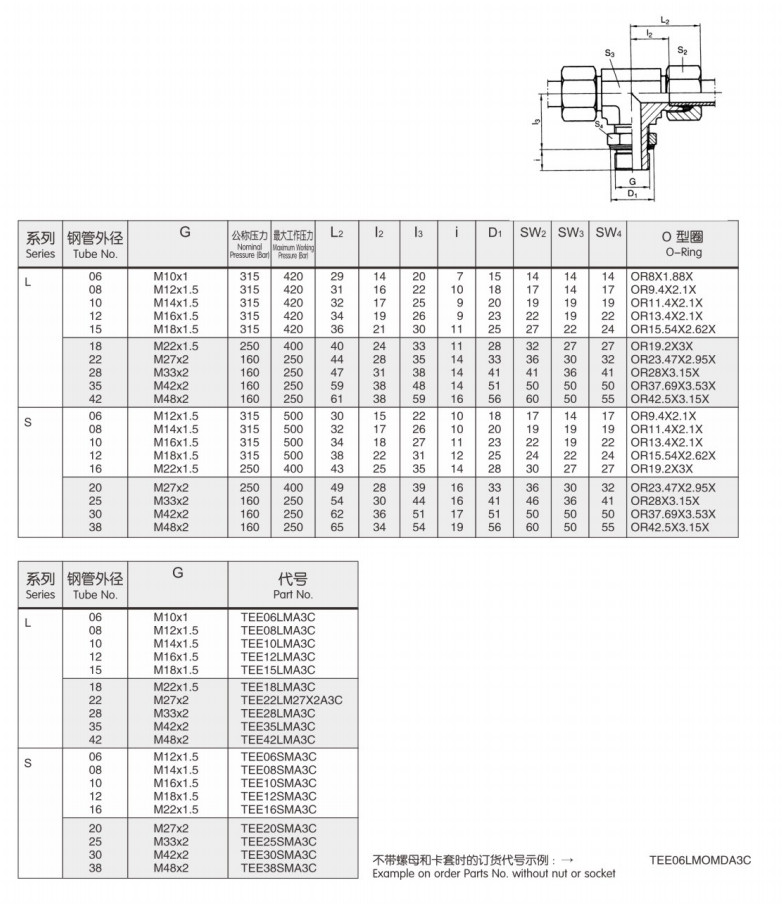 TEE06LMA3C,TEE08LMA3C,TEE10LMA3C,TEE06SMA3C,TEE08SMA3C,直路端三通可調向接頭 |