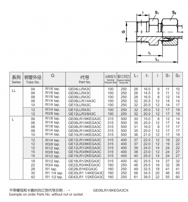 GE10LR1/4KEGA3C,GE12LR1/4KEGA3C,GE12LR3/8KEGA3C,GE12LR1/2KEGA3C,GE15LR3/8KEGA3C,GE15LR1/2KEGA3C,