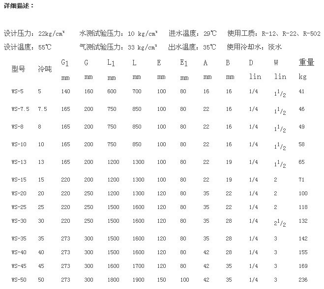 詳細信息 WS-5,WS-7.5,WS-8,WS-10,WS-13,WS-15,WS-20,WS-25,WS-30,單回路冷凝器 WS-35,WS-40,WS-45,WS-50,