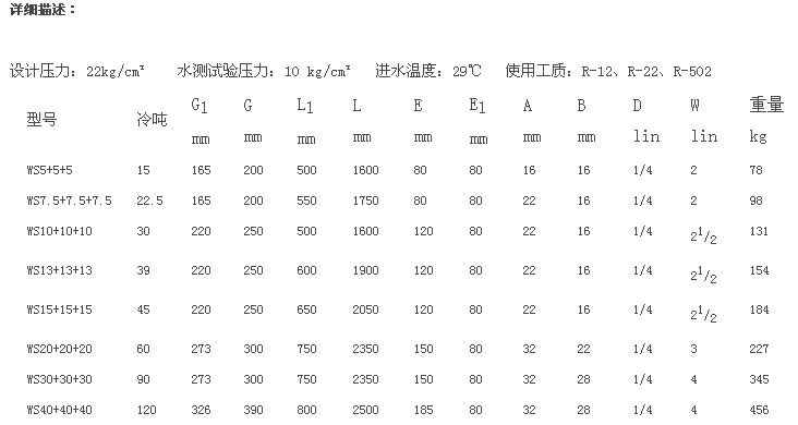 詳細(xì)信息 WS5+5+5,WS7.5+7.5+7.5,WS10+10+10,WS13+13+13,WS15+15+15,三回路冷凍機(jī)冷凝器 WS20+20+20,WS30+30+30,WS40+40+40,